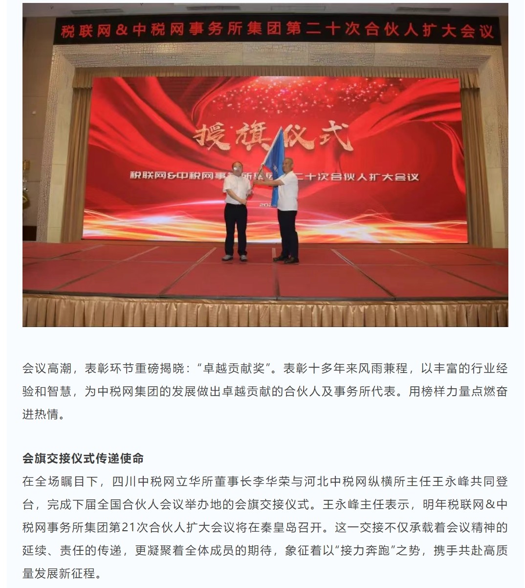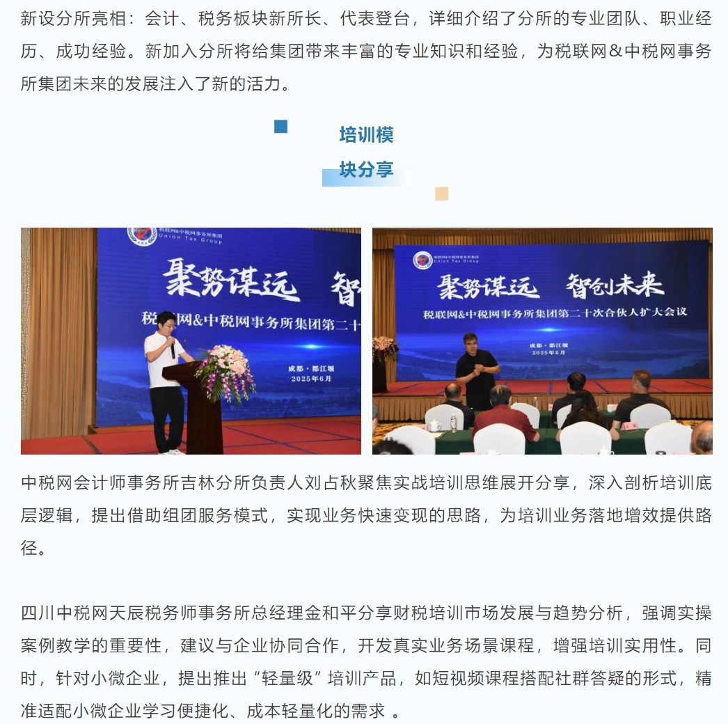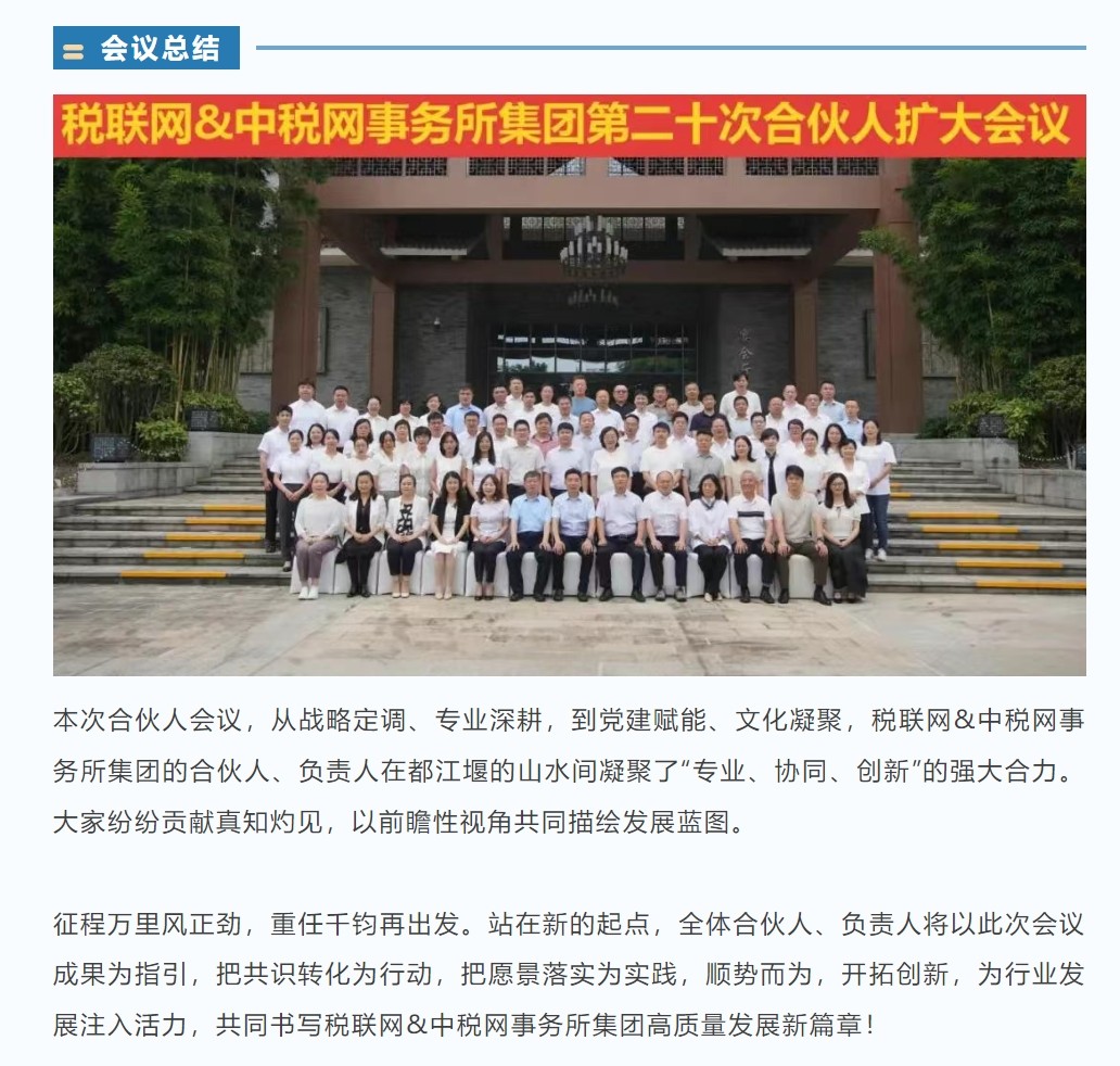 2025年6月16日-18日,税联网&中税网事务所集团第二十次合伙人扩大会议在成都都江堰四威培训中心酒店盛大启幕。